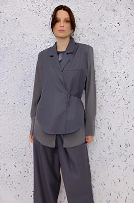 L'ensemble Nayra est une ode à la fluidité, au raffinement et au confort. Confectionné dans une matière légère et subtilement texturée, il combine un top portefeuille au tombé élégant et un pantalon droit au tombé impeccable. Avec ses finitions soignées, ses lignes sobres et sa palette douce, il évoque la grâce d’un tailoring revisité pour les femmes modernes.