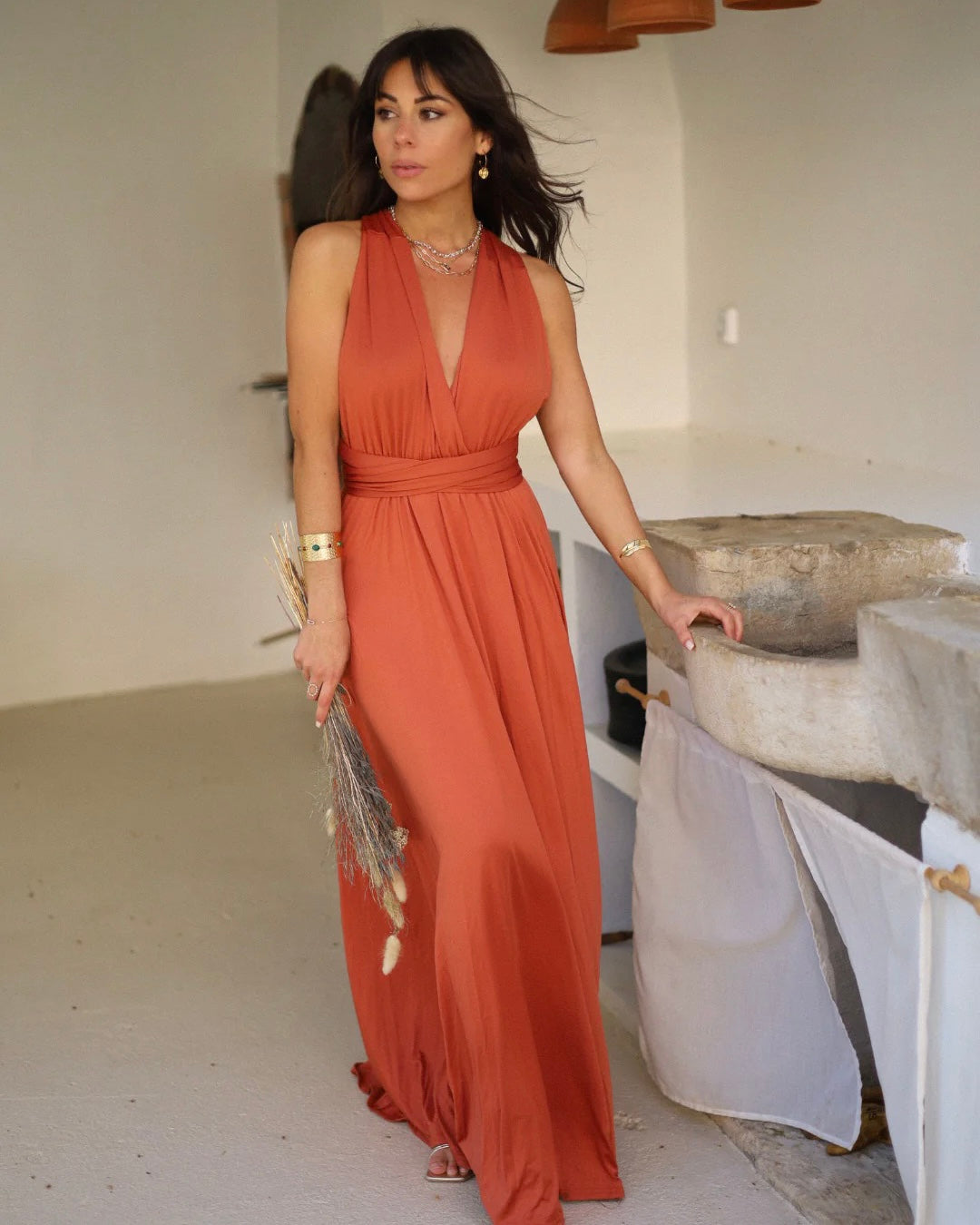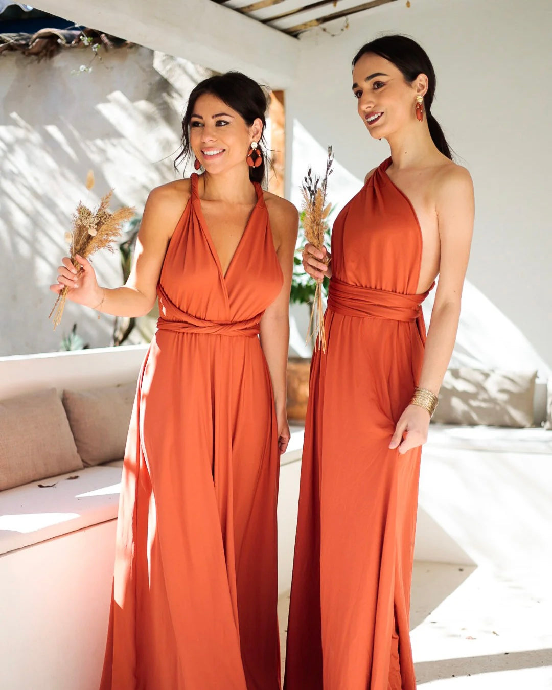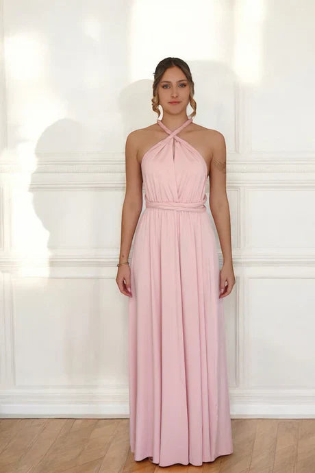 ✨ Un seul modèle, des possibilités infinies : Grâce à ses bandes modulables, la robe se transforme selon votre humeur. Plus de 8 façons différentes de nouer les bretelles : tour de cou, épaules asymétriques, croisées dans le dos ou nouées en bustier… chaque version révèle une nouvelle facette de votre style.